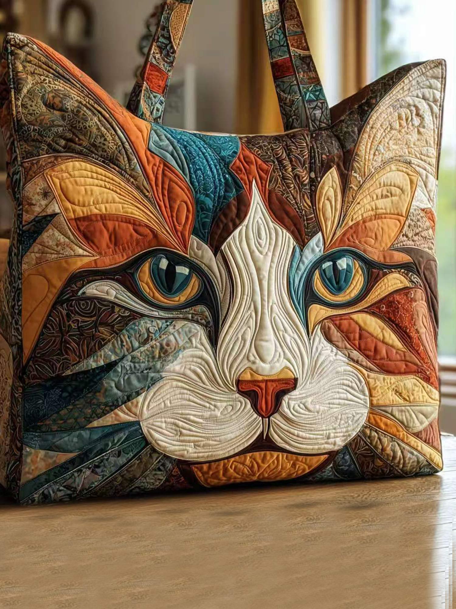 Animal-print orange cat print quilted tote bag