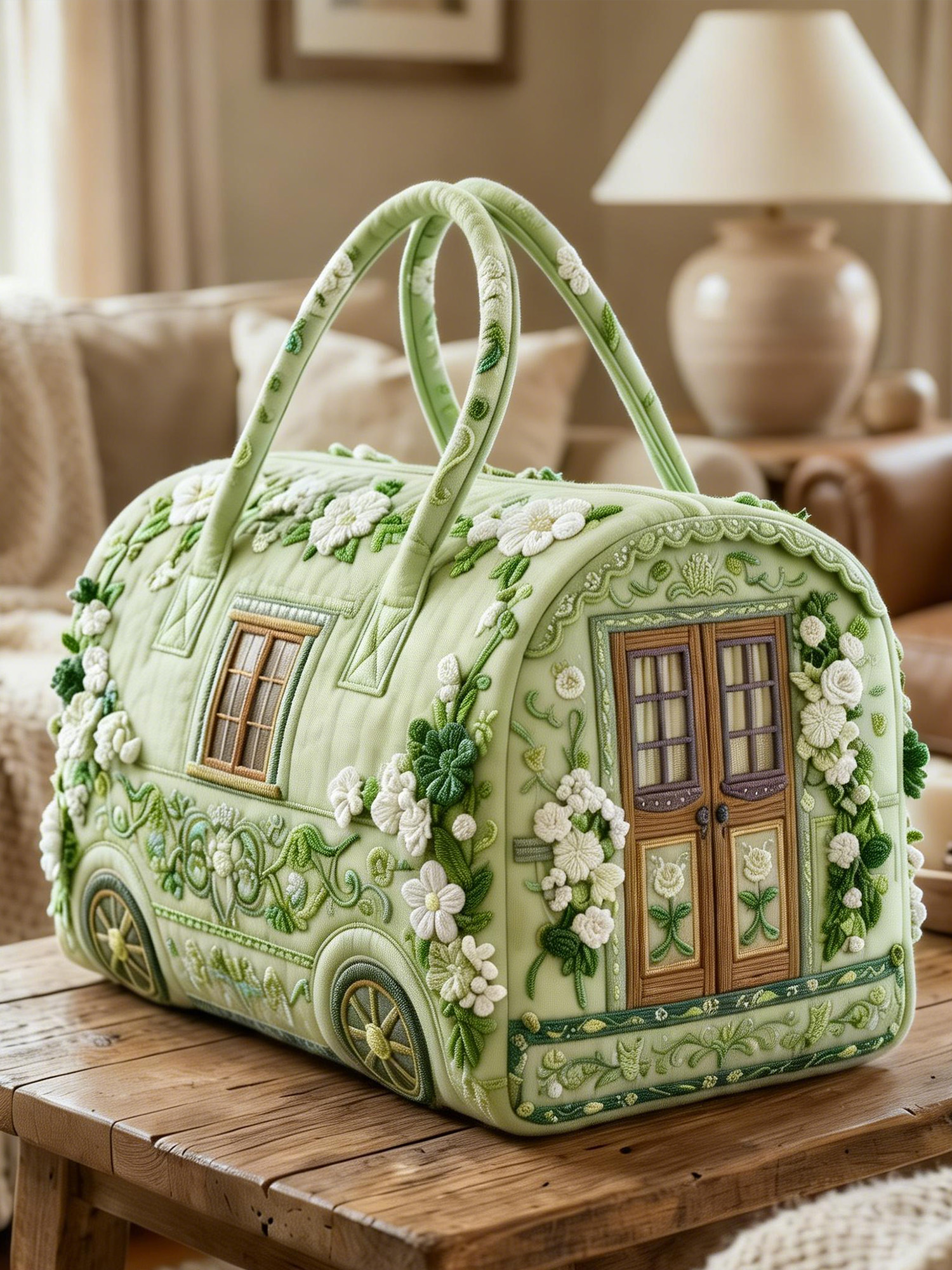 Artisan 3D Floral Light Green Quilted Travel Bag