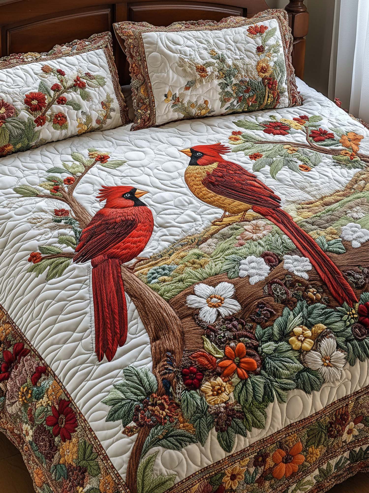 Cardinal Love Dance 3- Piece Quilted Bedding Set