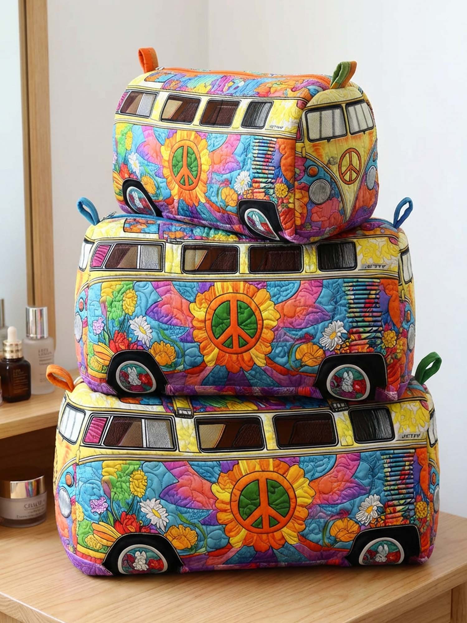Hippie Van Peace Frog Cotton Quilted Cosmetic Bag