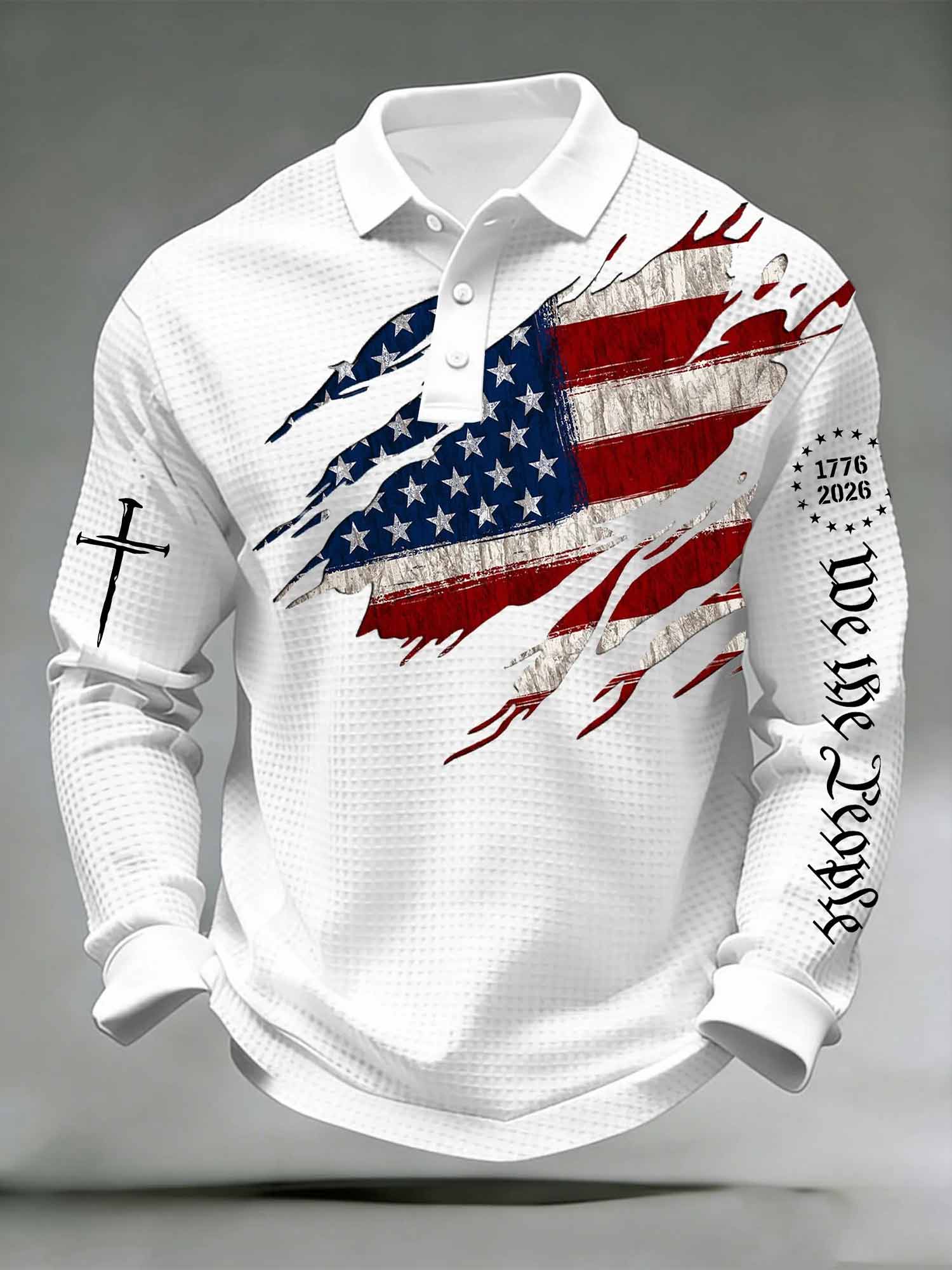 Men's 250th Anniversary National Flag Print Casual Waffle Fabric Polo Shirt