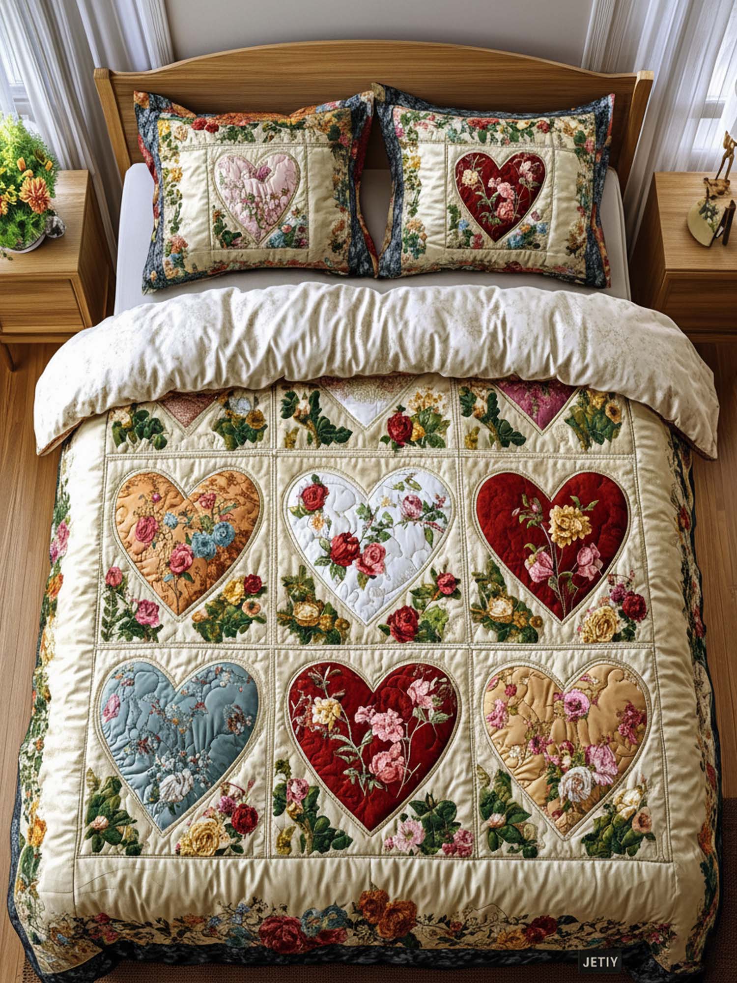 Patchwork Hearts 3- Piece Quilted Bedding Set
