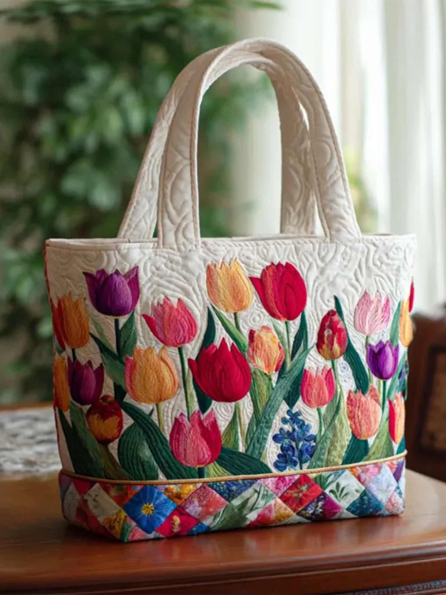 Looking for a tote bag that's both fun and functional? Our quilted tote bag is thoughtfully designed to make everyday carrying easier-while adding a fun, festive touch to your look. Perfect for everyday use or seasonal outings, this bag combines sturdy construction with charming prints to brighten up any outing. It's the perfect combination of practicality and personality!
