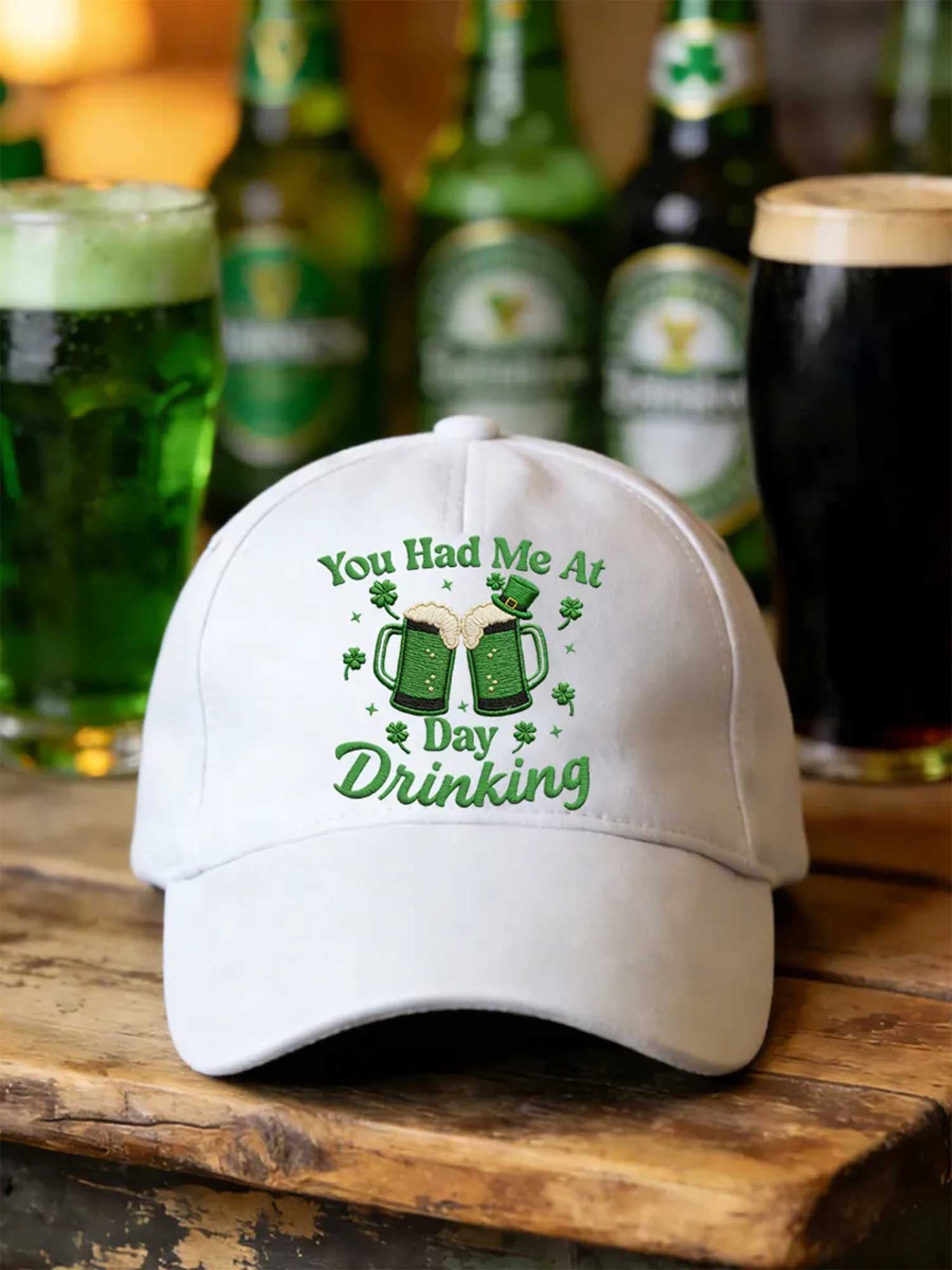 Unisex Funny St. Patrick's Day You Had Me At Day Drinking Print Hat