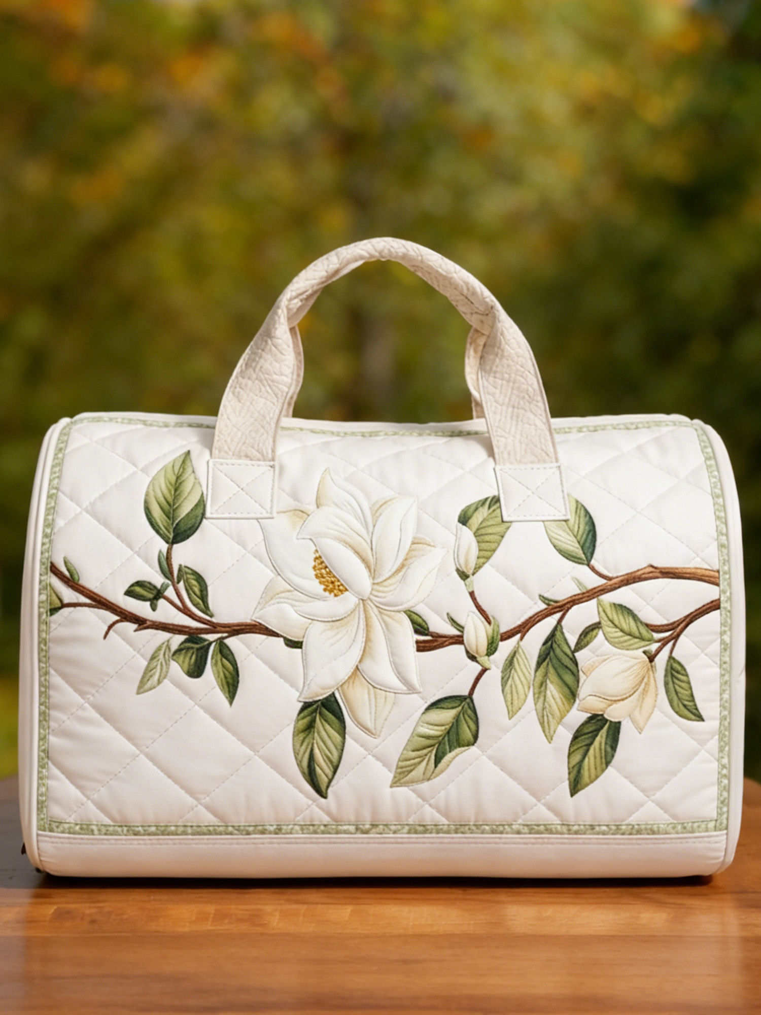 White Magnolia Patchwork Quilted Travel Bag